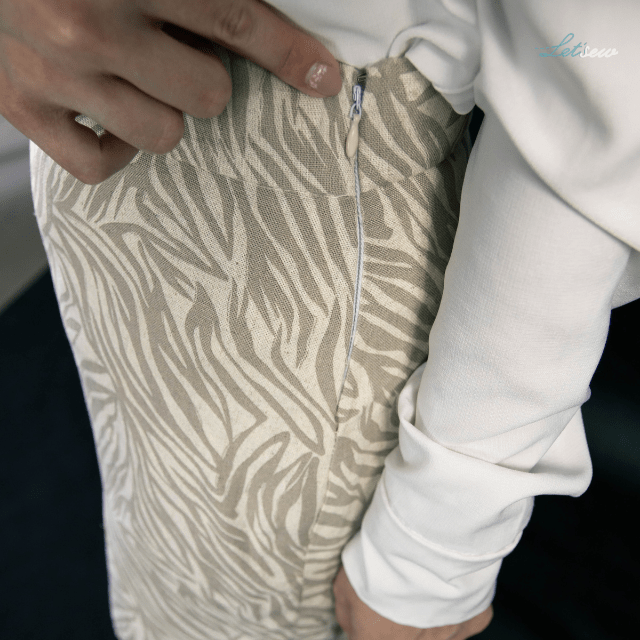 Przy szyciu tej spódnicy nie miałam odpowiedniego zamka… Znalazłam biały zamek kryty i postanowiłam pomalować jego końcówkę lakierem hybrydowym w odcieniu beżu, aby pasował do spódnicy. Wyszło super – lakier się nie spiera, także udało się dokończyć projekt bez wizyty w pasmanterii 🙂