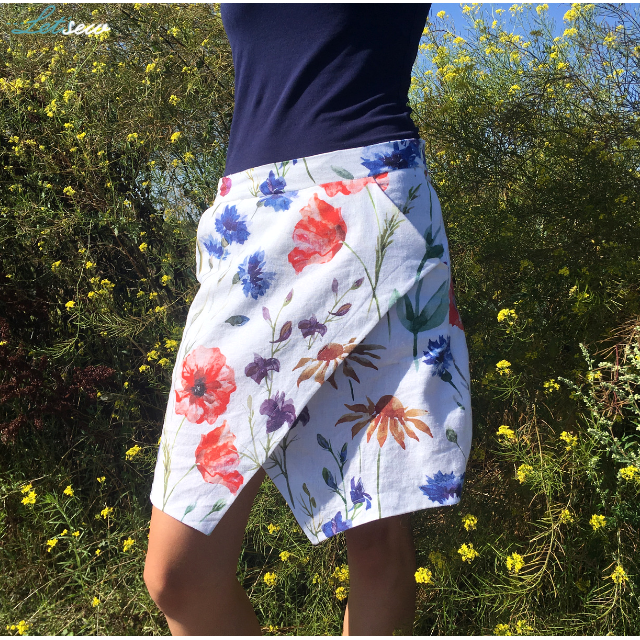 Portfelowy krój sprawia, że spódnica jest bardzo wygodna i nadaje się na codzienne biegi za Lili nawet w tropikalne upały!