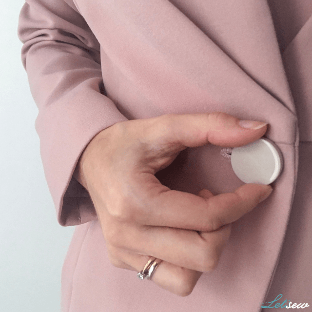 Ale najtrudniejszy moment nadszedł na samym końcu… Zrobiłam próbę obszycia dziurki na skrawkach materiału – jedna maszyna nie dała rady, druga poradziła sobie świetnie. Jednak przy właściwej dziurce na marynarce dziurka nie udała się… Pozostało mi dziergać dziurkę ręcznie – robiłam to pierwszy raz, zatem nie jestem w pełni zadowolona z efektu końcowego. I tak miał być idealny garnitur, a dziurka zepsuła mi całą zabawę. Mówi się trudno i nosi się garnitur dalej 🙂