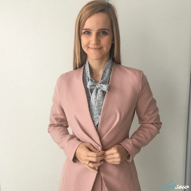 Długo damski garnitur był poza strefą moich krawieckich umiejętności. Od zawsze bałam się szycia spodni (zawsze mi się wydawało, że uszyję „uciekające” nogawki i za ciasne w kroku…) – do nich przekonałam się w szkole. Dobra forma to podstawa, więc 90% spodni szyję z bazowej konstrukcji. Żakiet to do dziś jest dla mnie ogromne wyzwanie… Jednak podstawowa zasada w szyciu, to „szyć, szyć i jeszcze raz szyć” – tylko tak można opanować szycie trudnych elementów.