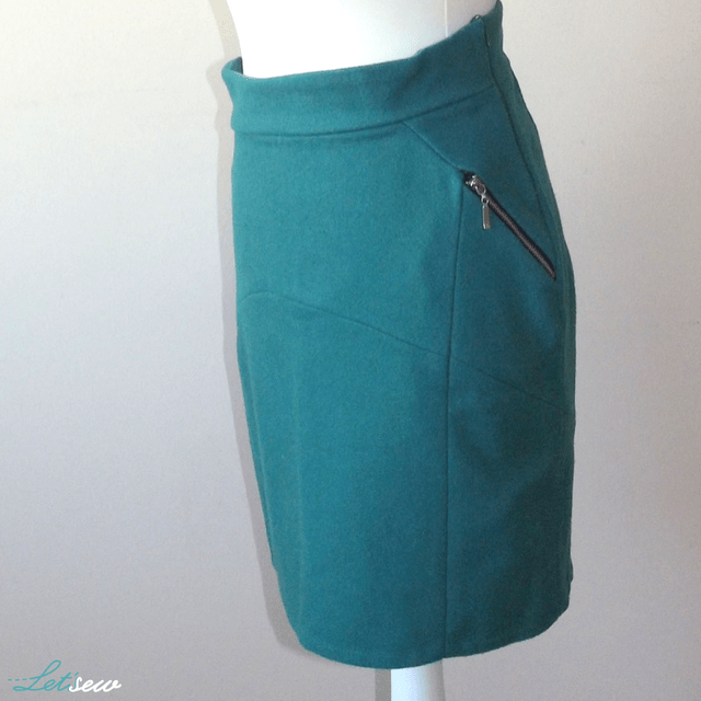 strasznie skomplikowane puzzle! Cały dzień myślałam, co z czym zszyć… Po tygodniu czytania, kombinowania i szycia powstała pierwsza spódnica – z wełny parzonej w kolorze butelkowej zieleni. Ale mnie duma rozpierała, gdy na każde „Jaka fajna spódnica” odpowiadałam „Dziękuję, sama uszyłam”! 🙂