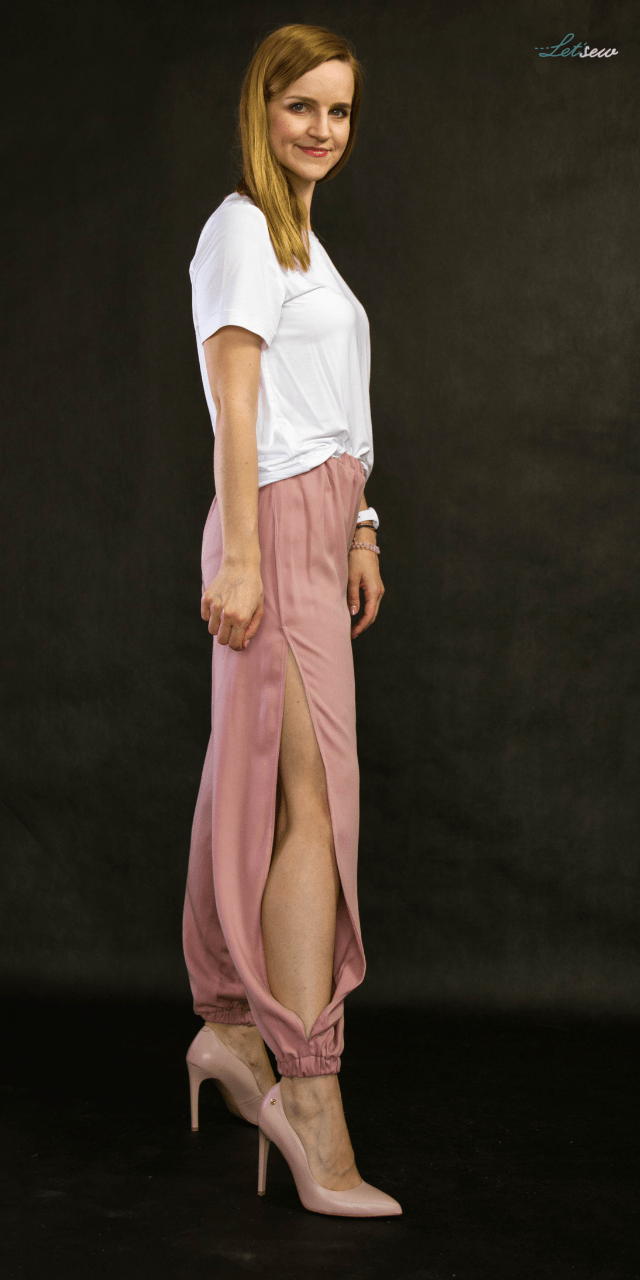 Spodnie, które widzicie na zdjęciach, to zabawa wykrojem. Rozcięcie na nogawce sprawia, że spodnie idealnie sprawdzą się na lato!
