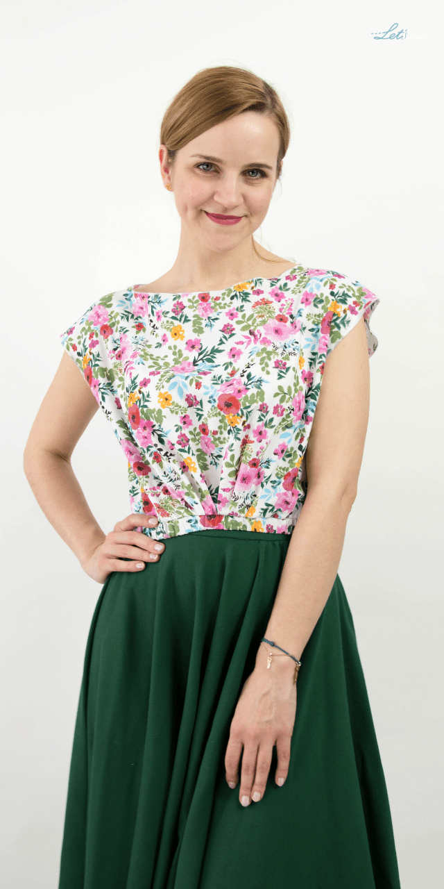 Szyłam dla mamy bawełniany fartuszek. I zostało mi niecałe pół metra materiału. Chciałam uszyć coś Lili, ale kwiatki nie przypadły jej tym razem do gustu, zatem postanowiłam wykombinować dla siebie bluzkę. I tak oto powstał prosty crop top z marszczeniem na brzuchu.