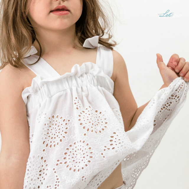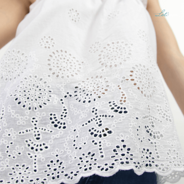 Uwielbiam haftowane bawełny! Postanowiłam uszyć dla siebie i dla Lili proste bluzki na lato. Tak naprawdę nie ma tu żadnej filozofii z wykrojem – trzy prostokąty i tyle. Ta tkanina jest tak przepiękna, że nie potrzebuje wymyślnych wykrojów!