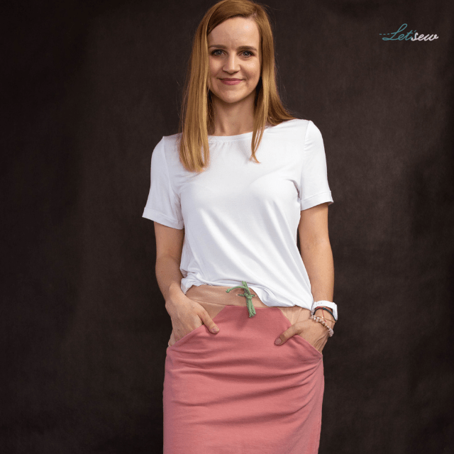 Z resztek z trójkolorowej bluzy uszyłam sportową spódnicę. Jest z dresówki, zatem wygodna ponad wszystko! Dodatkowo ma kieszenie, więc jest bardzo funkcjonalna. Niby prosta spódnica, a jednak dzięki połączeniu różnych kolorów dresówki jest bardzo oryginalna!